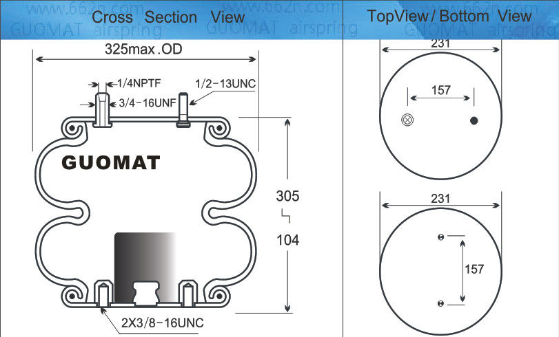 أكياس الهواء الربيع الهواء الصناعية مزدوجة Firestone W01-358-7410 لوحة ضياء. 231mm