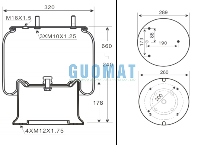ربيع هوائي تعليق شاحنة GUOMAT نموذج 1T6334 هو بديل عالي الأداء ، متوافق تمامًا مع النماذج المكافئة للعلامات التجارية الرئيسية التالية: Firestone: W01-M58-6334 ؛ Contitech:81M16K1جودير: 1R14-719.